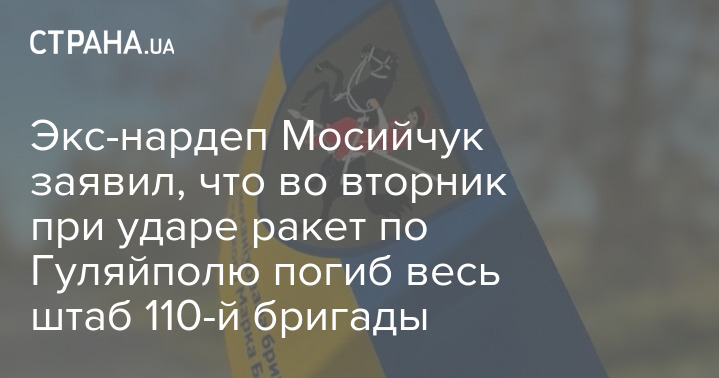 Экс-нардеп Мосийчук заявил, что во вторник при ударе ракет по Гуляйполю погиб весь штаб 110-й бригады