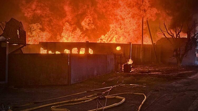 Вследствие атаки возникли пожары на складах одного из предприятий и гаражного кооператива. На местах ударов работали более 50 спасателей и саперы.