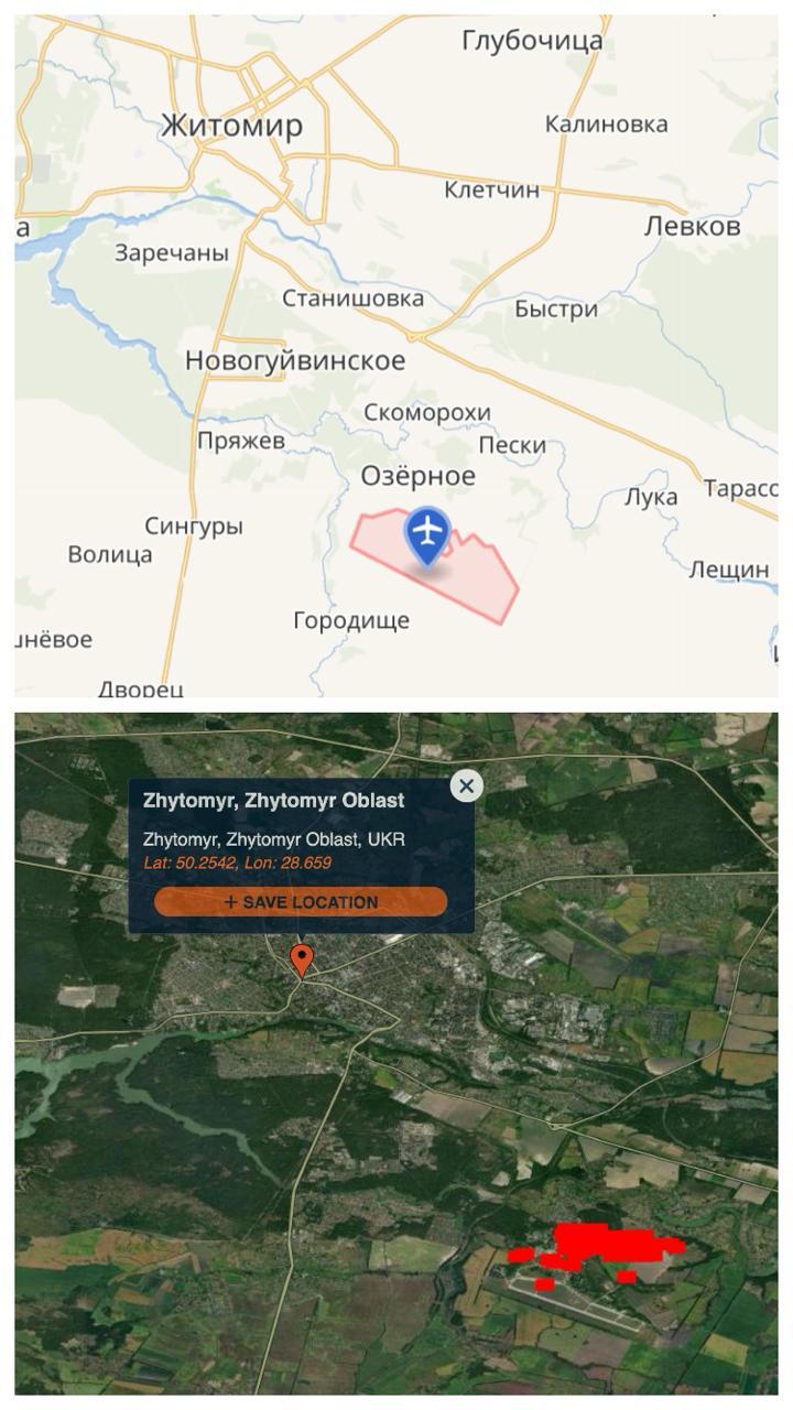 Российские телеграм-каналы сообщают заявляют об ударе по аэродрому Озерное под Житомиром. Украинская сторона его не подтверждала.