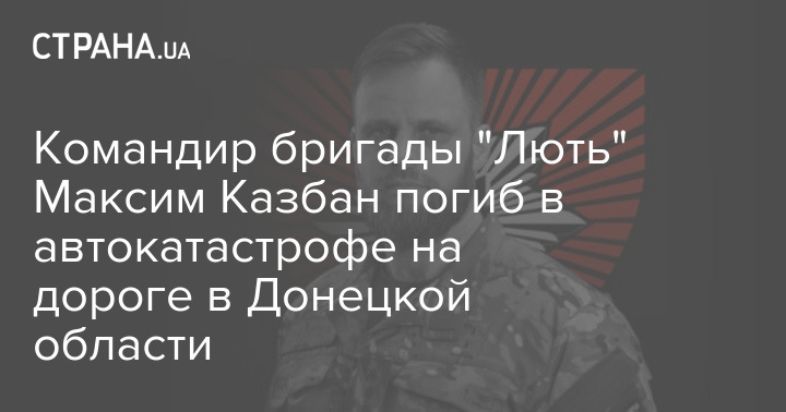 Сегодня в ДТП на территории Донецкой области погиб командир Объединённой штурмовой бригады "Лють" Нацгвардии Украины полковник полиции Максим Казбан.
