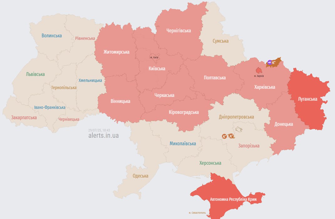 18.43 Тревога в Киеве и ряде областей из-за угрозы баллистики.