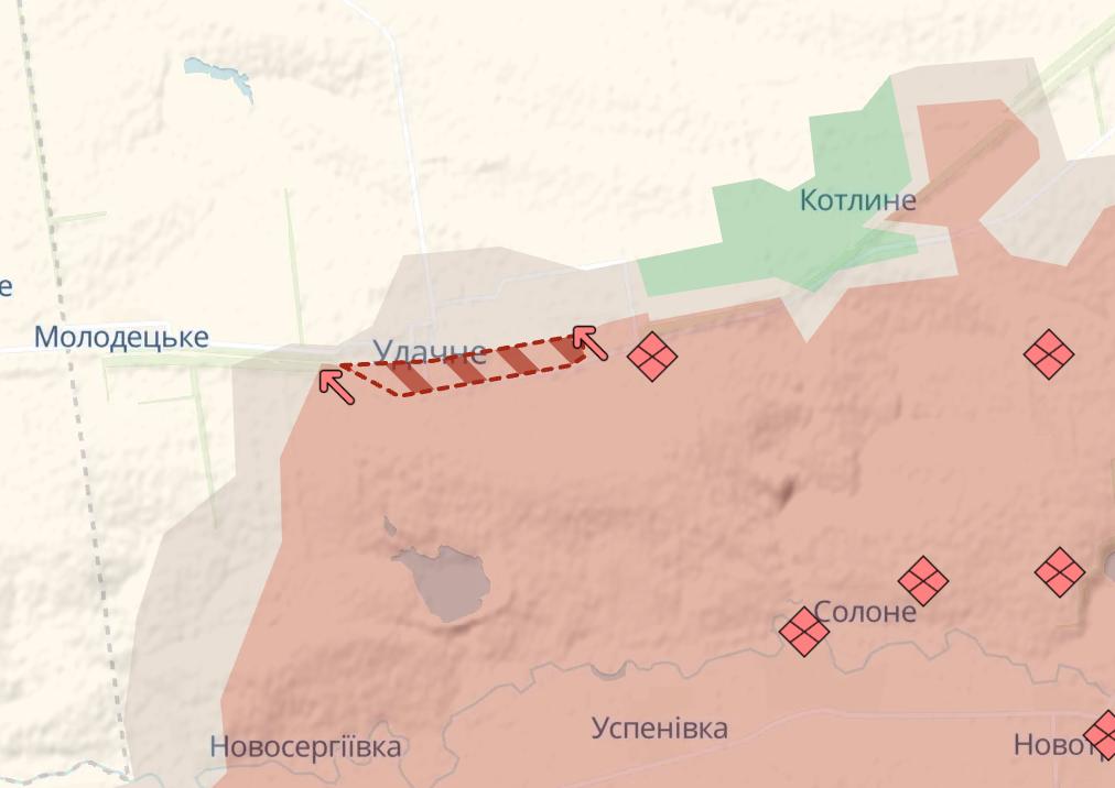 Также показано продвижение ВСУ в Зеленом Гаю, однако полное его освобождение, о котором заявлял главком, пока на карте не фиксируется.