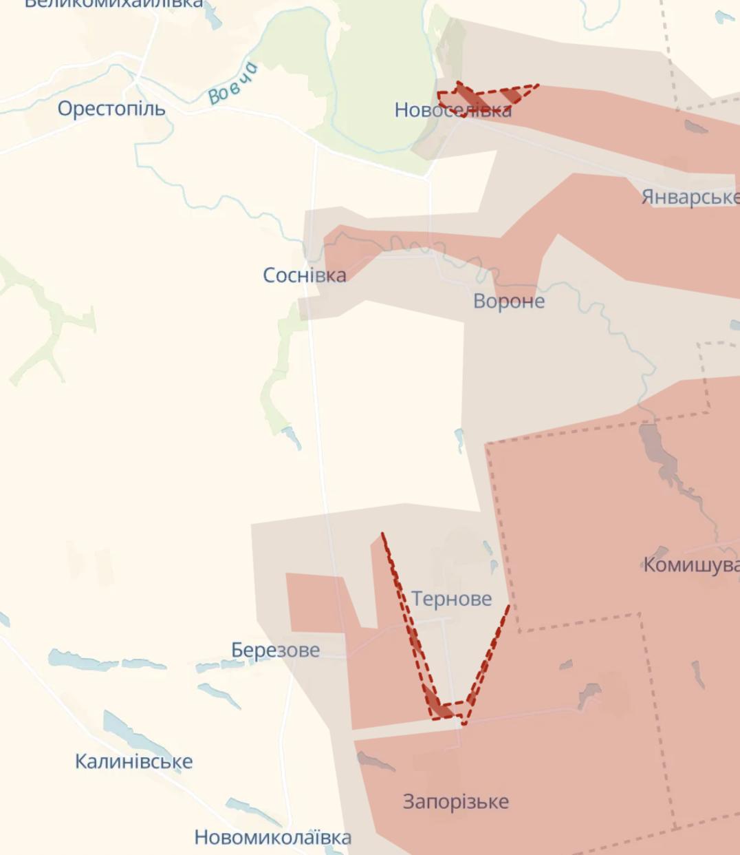 При этом в Днепропетровской области россияне продвинулись в Новоселовке и вокруг Тернового.