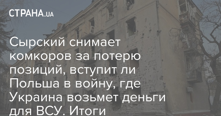 Главком Сырский уволил командующих двумя корпусами – главу 17-го корпуса Владимира Силенко и 20-го Максима Китугина, сообщают СМИ со ссылкой на источники. По их данным, решения главкома связаны с потерями позиций этими корпусами.