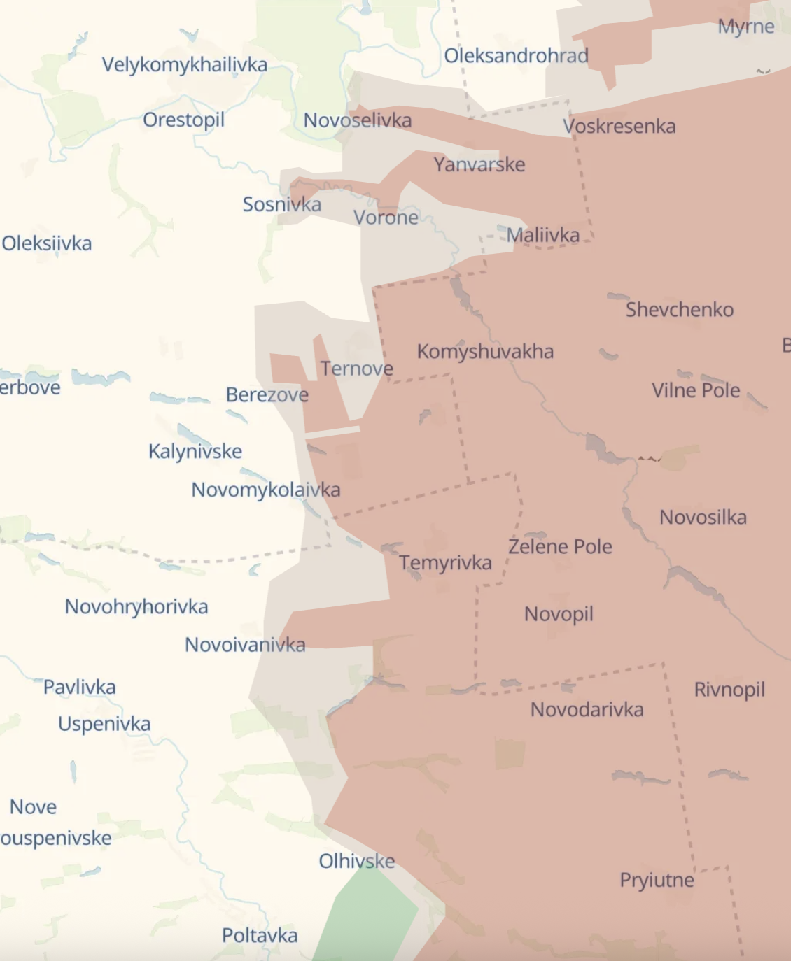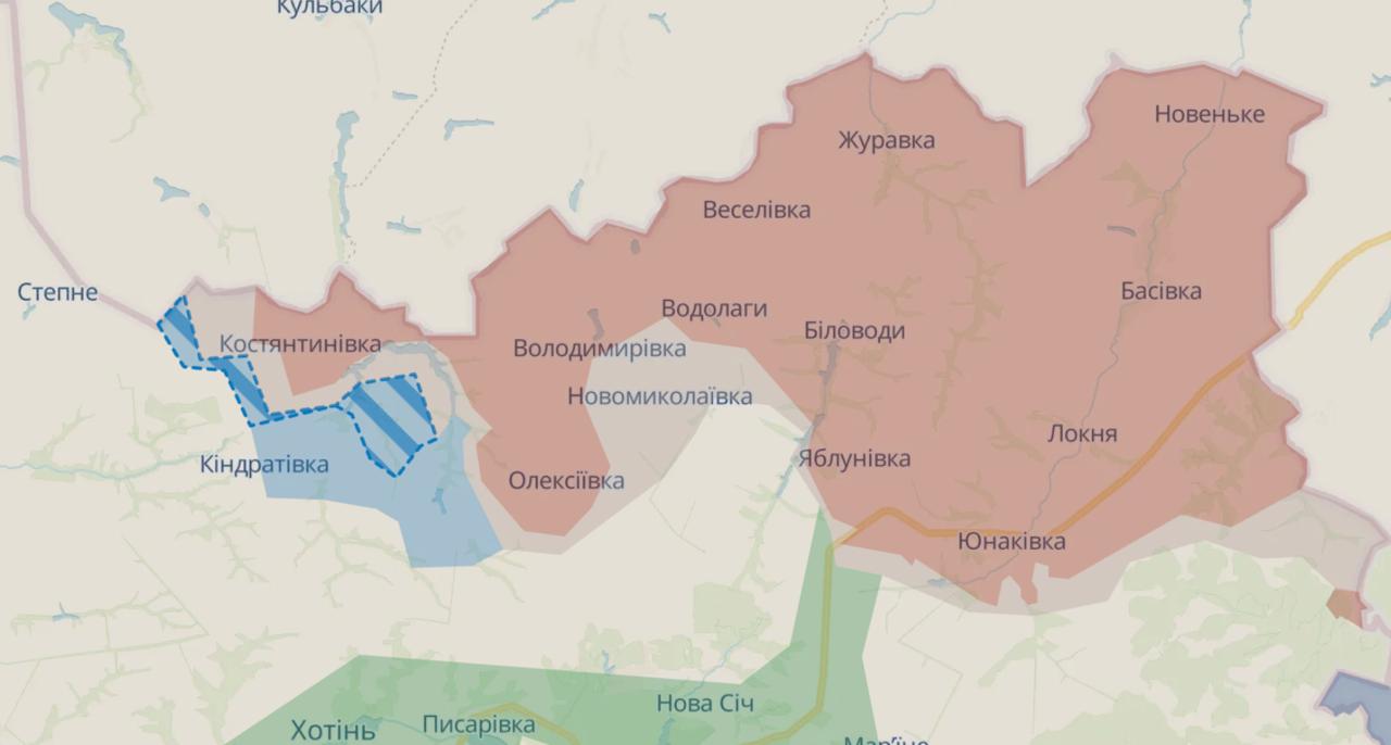 На Днепропетровщине они наступают в Новоселовке и вокруг Тернового (Россия утверждает, что уже захватила оба села). Также армия РФ зашла в Днепропетровскую область на еще одном участке - около Ивановки, перейдя через реку Волчья - такие данные публикует военный телеграм-канал Deep State.