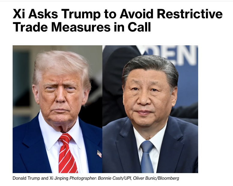 Издание Bloomberg пишет, что Си Цзиньпин попросил Трампа воздержаться от ограничительных торговых мер во время телефонного разговора.