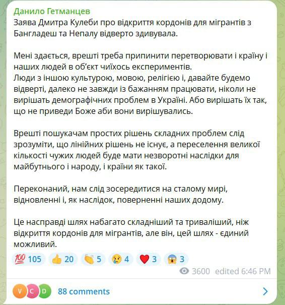 Открытие границ для мигрантов. Между Кулебой и Гетьманцевым развернулся спор о демографии