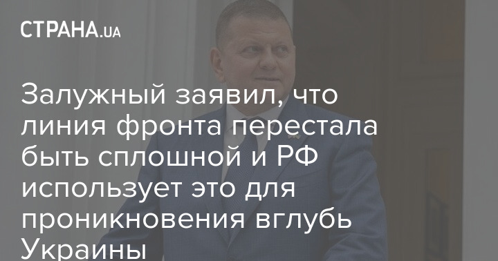 Залужный заявил, что линия фронта перестала быть сплошной и РФ использует это для проникновения вглубь Украины