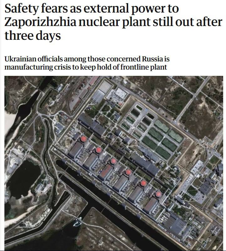 На Запорожской атомной электростанции возможен сценарий Фукусимы. Внешнее снабжение Запорожской АЭС электричеством отсутствует уже три дня, а системы охлаждения и безопасности работают на дизельных генераторах из-за перекрытия последней линии электропередачи.