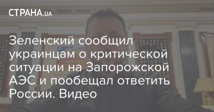 Зеленский сообщил украинцам о критической ситуации на Запорожской АЭС и пообещал ответить России. Видео