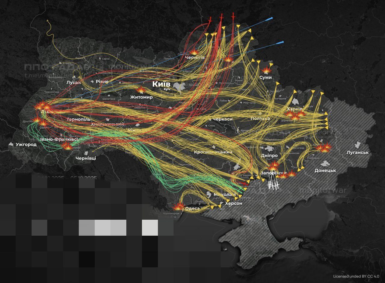 8:06 Предположительная карта ночных атак по Украине.