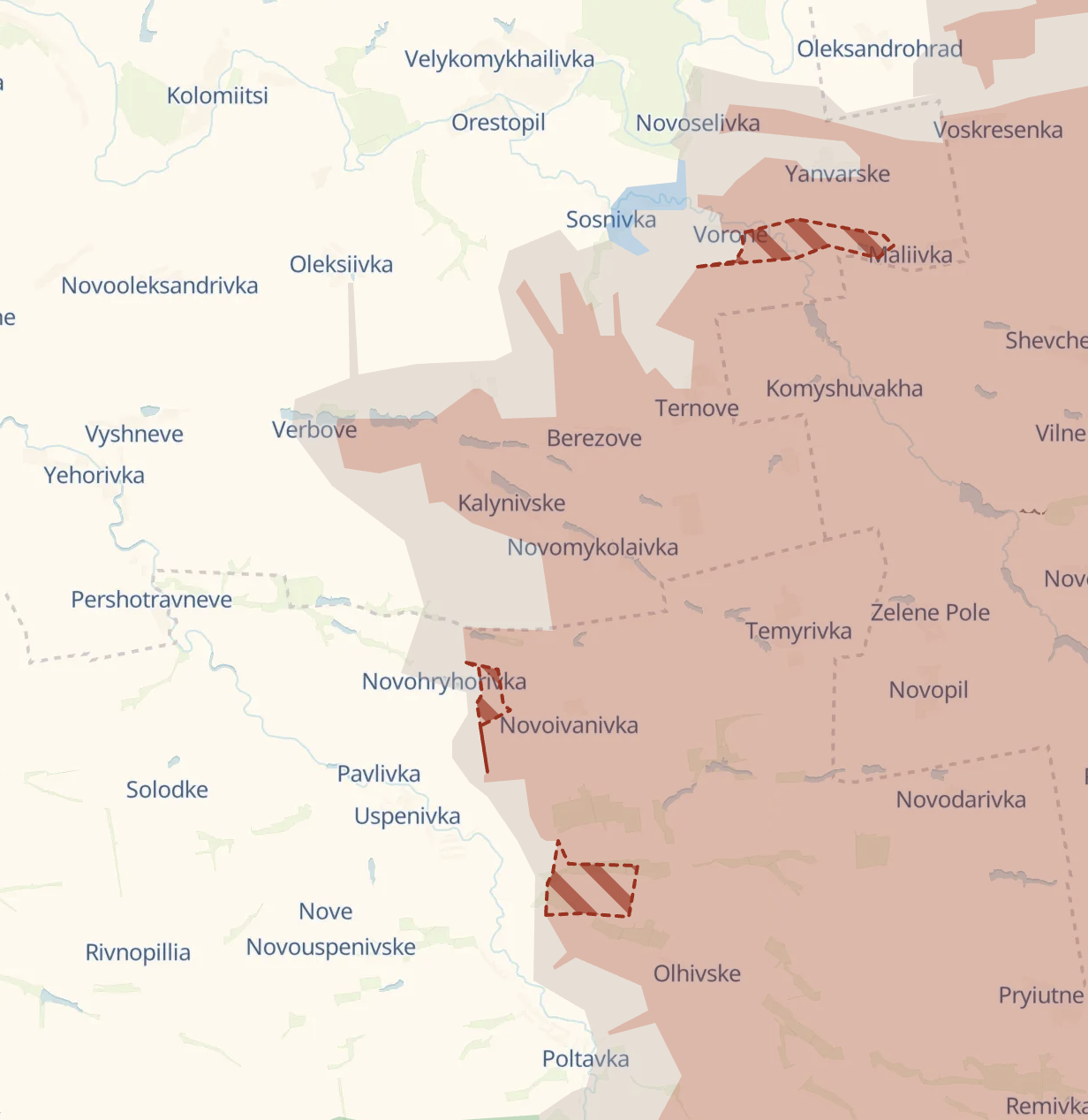 По данным Deep State, они захватили село Малиевка (в РФ давно заявляли, что оно захвачено), продвинулись в Вороном, Новгригорьевке и Охотничьем.