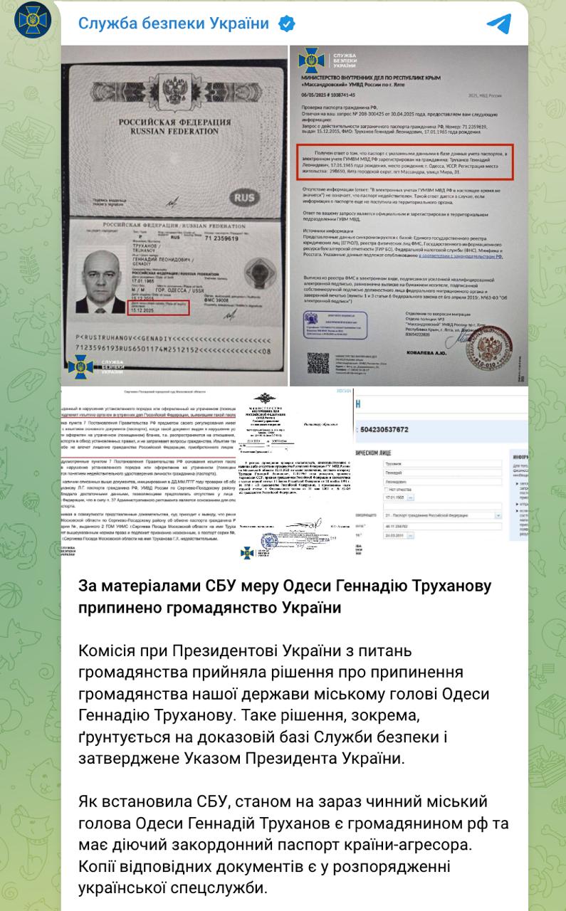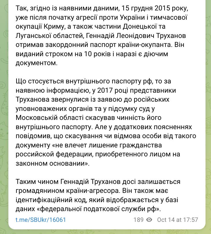 В свою очередь СБУ официально сообщила, что Труханова лишили гражданства на основании ее материалов.
