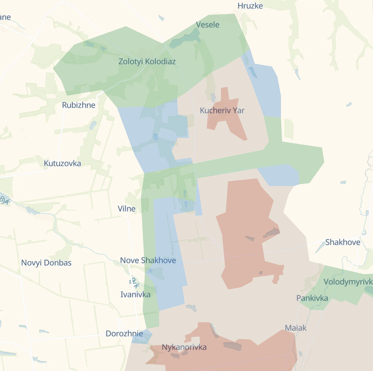 Украинские войска оттеснили россиян на Добропольском выступе - в районе Нового Шахового и Кучерова Яра, сообщает военный паблик Deep State.