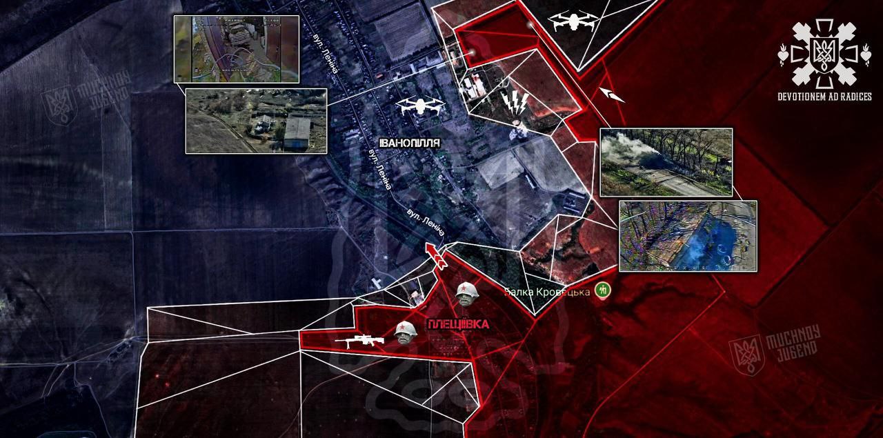 "Мучной" также пишет, что обстановка в городе продолжает обостряться, "противник плотно взялся за Покровск и развивает наступление сразу с нескольких опорных точек, пытаясь замкнуть кольцо вокруг наших позиций". Он пишет, что россияне заняли территорию Динасового завода ближе к северной части города, "и теперь этот район находится в красной зоне".