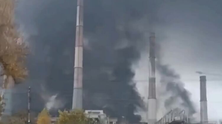 Клубы черного дыма. Появилось видео горящей Змиевской ТЭС после ночного удара по Украине