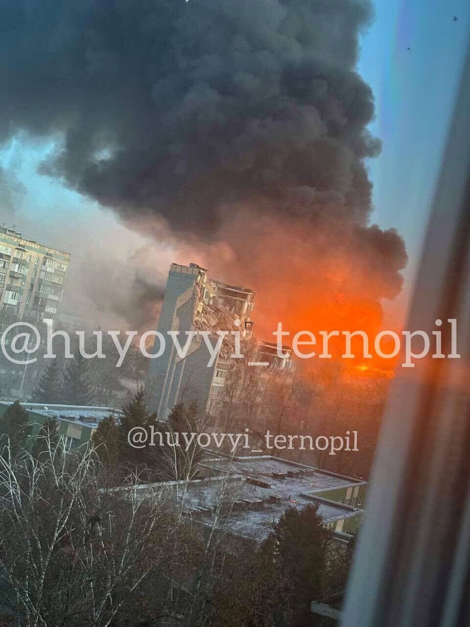 7.50 Масштабный столб дыма в Тернополе после прилёта.