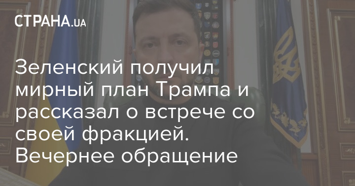 Зеленский получил мирный план Трампа и рассказал о встрече со своей фракцией. Вечернее обращение