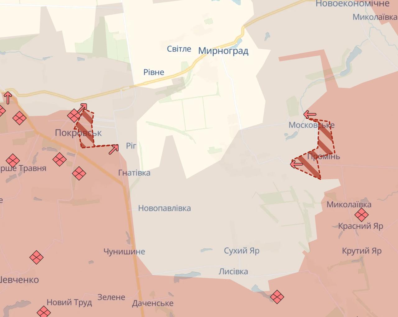 В частности, паблик подтверждает заход российских военных в центр Покровска. Ресурс геолоцировал видео россиян в районе железнодорожного вокзала.