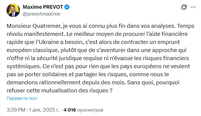 Напомним, ряд стран Европы продвигает идею выдачи Украине так называемого репарационного кредита на 140 млрд евро за счет замороженных в ЕС российских активов. Бельгия, как крупнейший держатель этих активов, выступает против такого варианта.