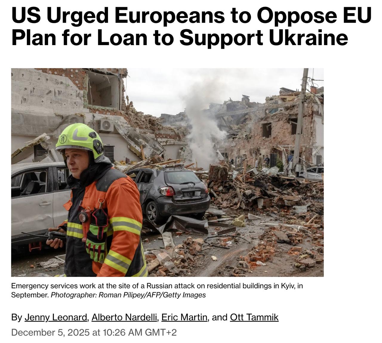 США требуют от ЕС заблокировать репарационный кредит Украине - Bloomberg
