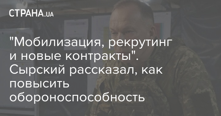 "Мобилизация, рекрутинг и новые контракты". Сырский рассказал, как повысить обороноспособность