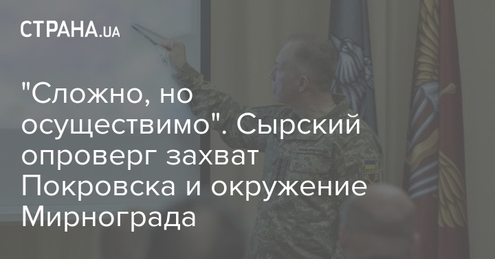"Сложно, но осуществимо". Сырский опроверг захват Покровска и окружение Мирнограда