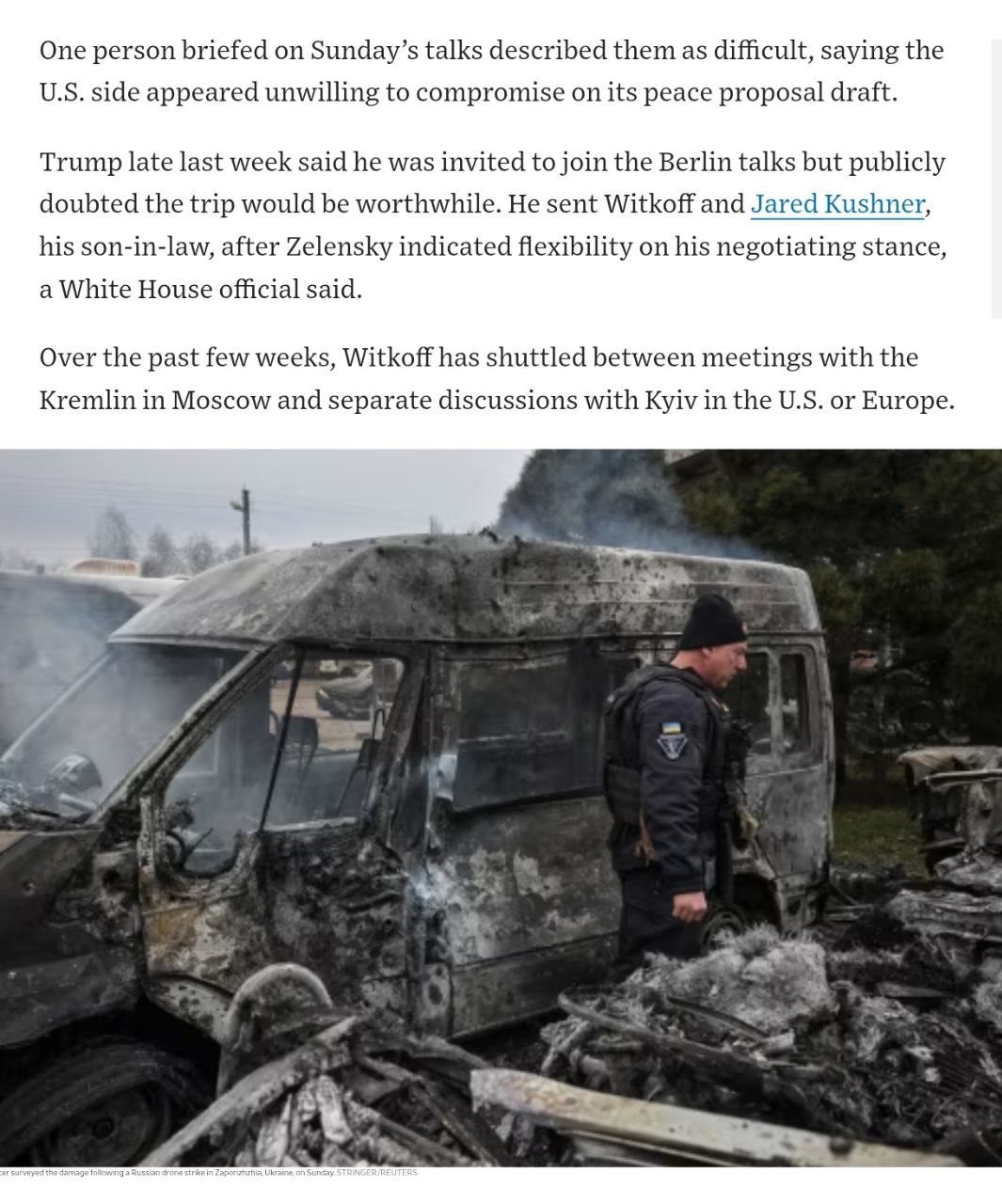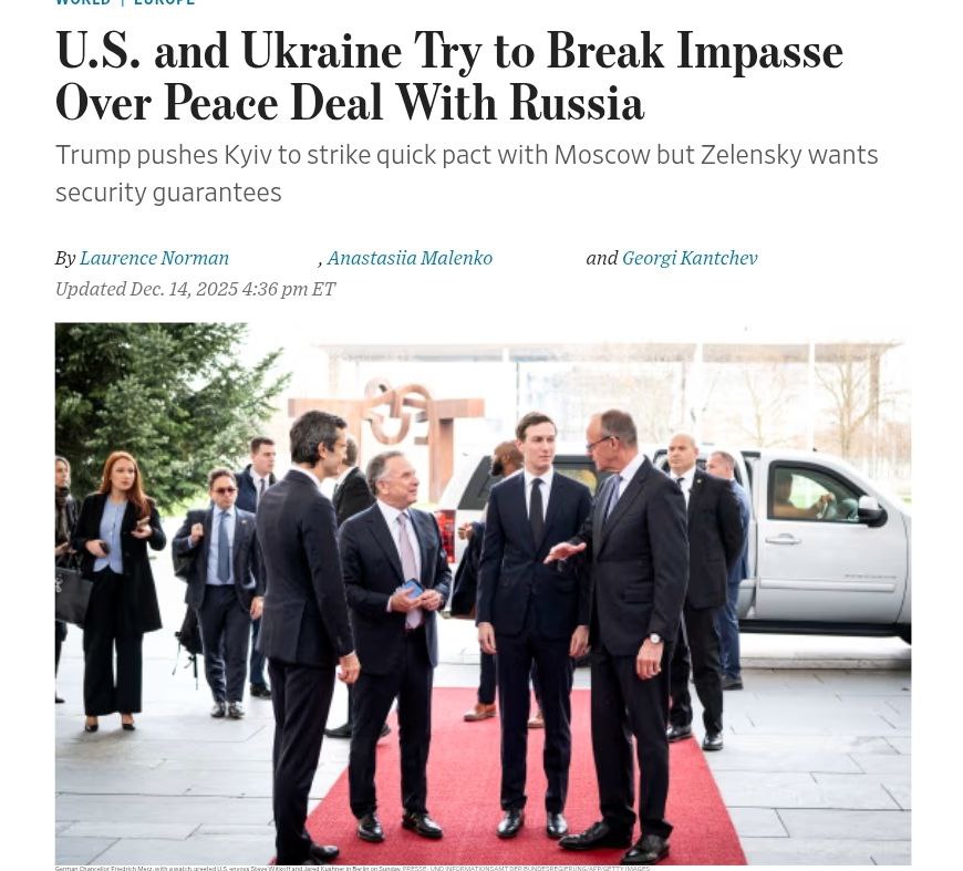 13.58 Уиткофф и Кушнер на сегодняшней встрече снова будут настаивать на полном выводе войск из Донбасса, а Зеленский продолжит отказываться, сообщает AFP со ссылкой на источники.