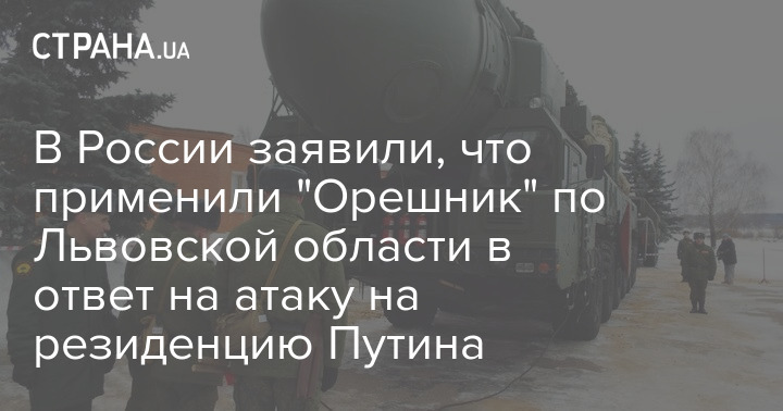 В заявлении ведомства сказано, что ночью "в ответ на террористическую атаку" на резиденцию президента Российской Федерации в Новгородской области в ночь на 29 декабря 2025 года Вооруженные силы РФ нанесли "массированный удар высокоточным оружием большой дальности наземного и морского базирования, в том числе подвижным грунтовым ракетным комплексом средней дальности "Орешник", а также ударными беспилотными летательными аппаратами по критически важным объектам на территории Украины".
