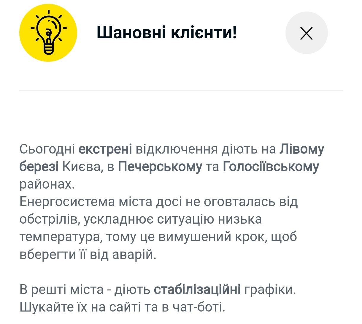 Отметим, что, по данным ДТЭК, левый берег и часть правого по-прежнему с экстренными отключениями.