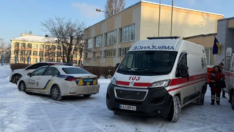 Медики у школы, где произошло ЧП. Фото: facebook.com/UA.KyivPolice
