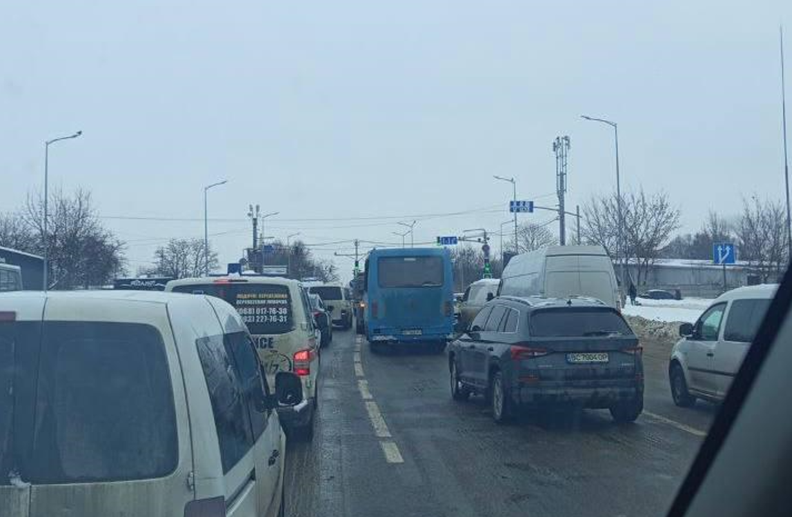 На выезде из города образовались пробки.