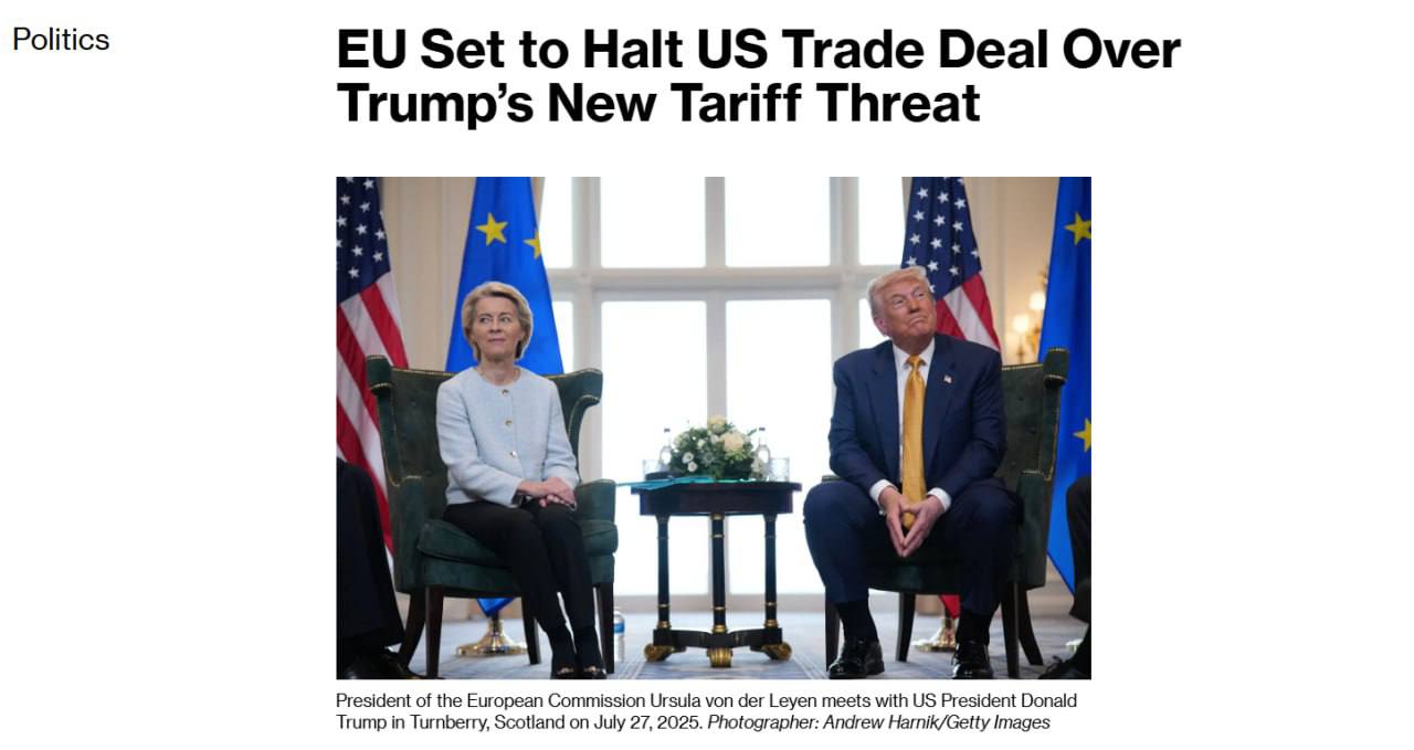 Речь идет о торговом соглашении, идея которого возникла между США и ЕС весной 2025 года, как реакция на введение Трампом жестких пошлин против стран Евросоюза. Теперь же, по мнению Вебера и депутатов ЕНП, введение новых пошлин делает предыдущее соглашение бессмысленным.
