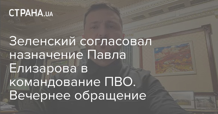 Зеленский согласовал назначение Павла Елизарова в командование ПВО. Вечернее обращение