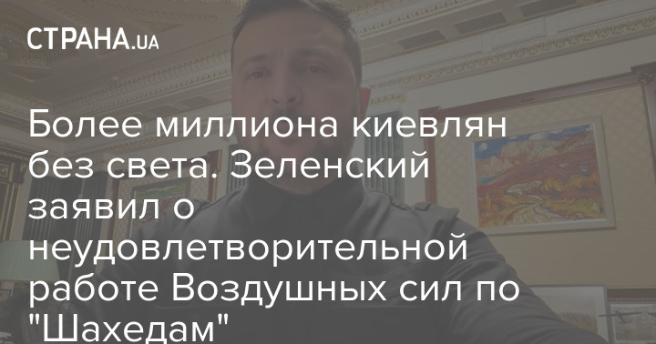 Более миллиона киевлян без света. Зеленский заявил о неудовлетворительной работе Воздушных сил по "Шахедам"