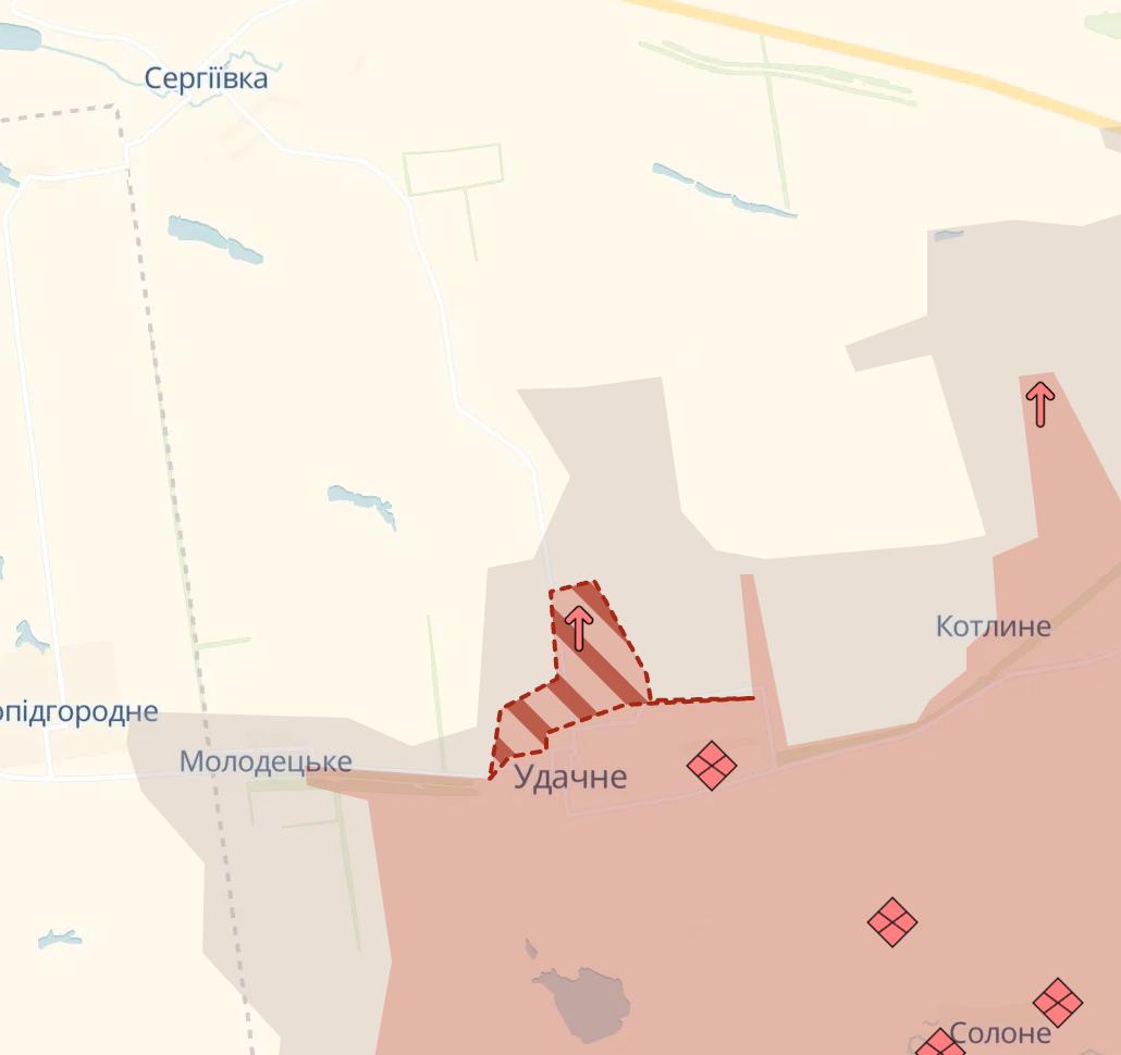 В свою очередь армия РФ продвинулась за Покровском в сторону Гришино, около Удачного, а также по трассе на Славянск.