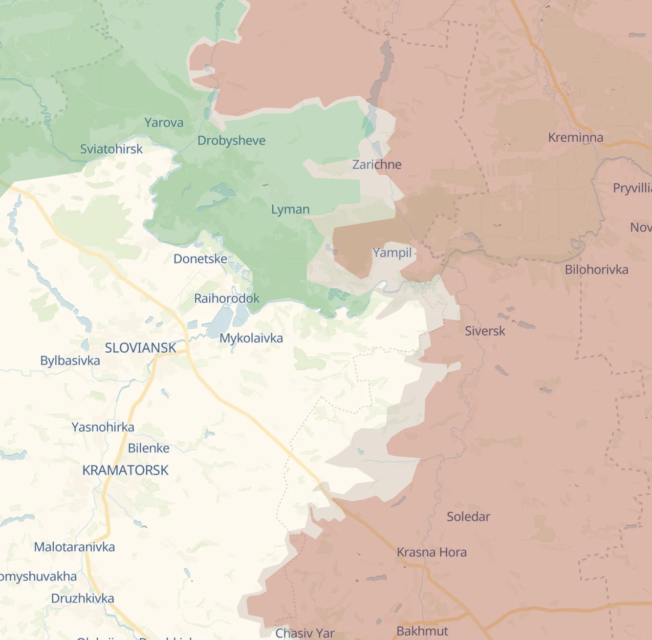 По его оценке, за последние два с половиной - три месяца россиянам удалось продвинуться на этом участке фронта на 11–14 км. Российские подразделения форсировали реку Нитриус, закрепились на ее западном берегу и вышли к северным подступам к Лиману. С юга и юго-востока им удалось занять Ямполь, продвинуться в сторону Заречного, выйти к дороге Лиман – Закитное и завязать бои за Озерное и Диброву. Отдельные группы смогли закрепиться на юго-восточной окраине Лимана.