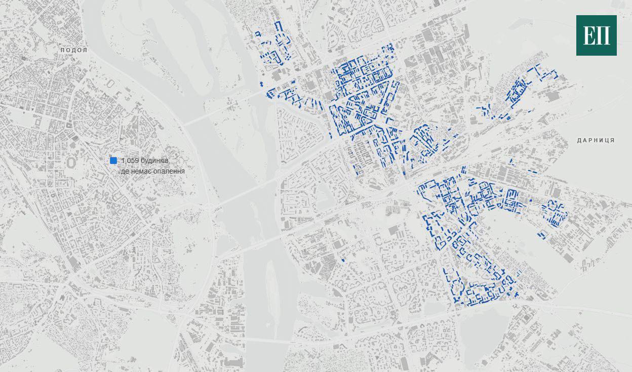 Судя по опубликованной карте - это почти половина домов всего левобережья Киева, в которых живут сотни тысяч человек.