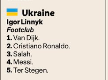 А звезды "Барселоны" Лионель Месси и Марк-Андре тер Стеген вошли только в пятерку от Игоря Линника. Об этом говорится в поименных результатах голосования, фото которых опубликованы в twitter-микроблоге Sport_Witness.