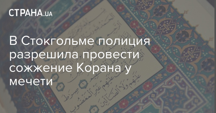 У Швеції біля однієї з мечетей Стокгольма відбудеться демонстрація проти Корану. Організатори запланували акцію спалення священної книги мусульман та приурочили її до ісламського свята Курбан-Байрам (зазначається 28 червня). Поліція Стокгольма надала дозвіл на проведення акції.