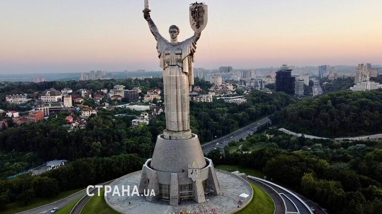 Також "Страна" показувала відео, як з монумента "Батьківщина-Мати" демонтували радянський герб.