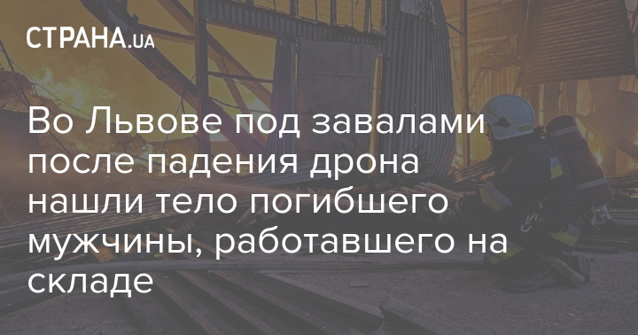 У Львові під завалами складу, атакованого сьогодні вранці російським дроном, знайшли тіло загиблого чоловіка.