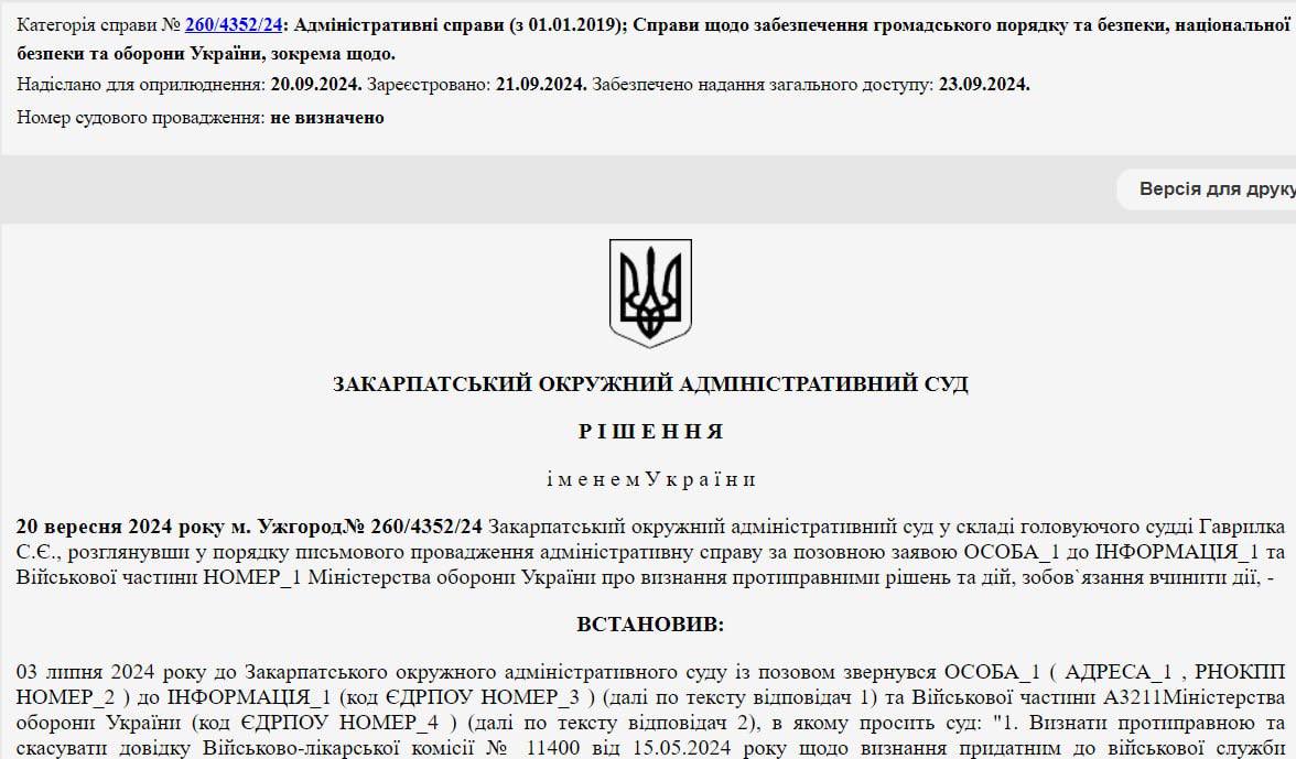 Такий вердикт суд виніс 20 вересня у зв'язку з розглядом позову про порушення під час мобілізації щодо 23-річного чоловіка.