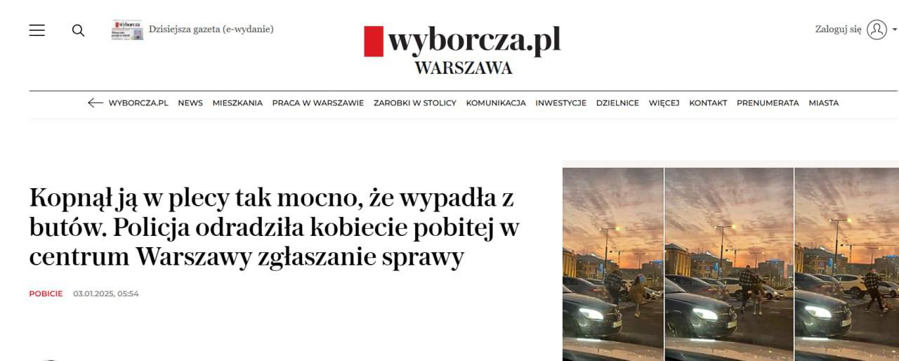 Також у виданні додали, що поліція порадила побитій у Варшаві жінці не повідомляти про цей випадок та не писати заяву.