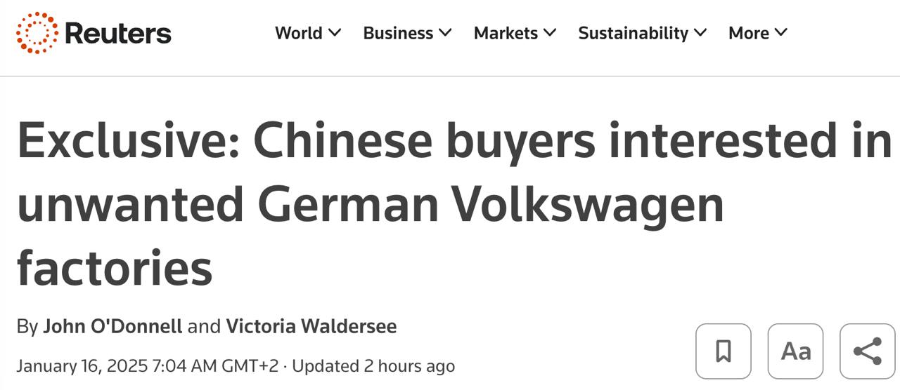 Купівля німецьких автовиробників може стати "найполітичнішою інвестицією Китаю на сьогоднішній день", адже VW довгий час був "символом промислової могутності Німеччини, якому тепер загрожує глобальний економічний спад, що вдарив по попиту, і скрипучий перехід до зелених технологій".
