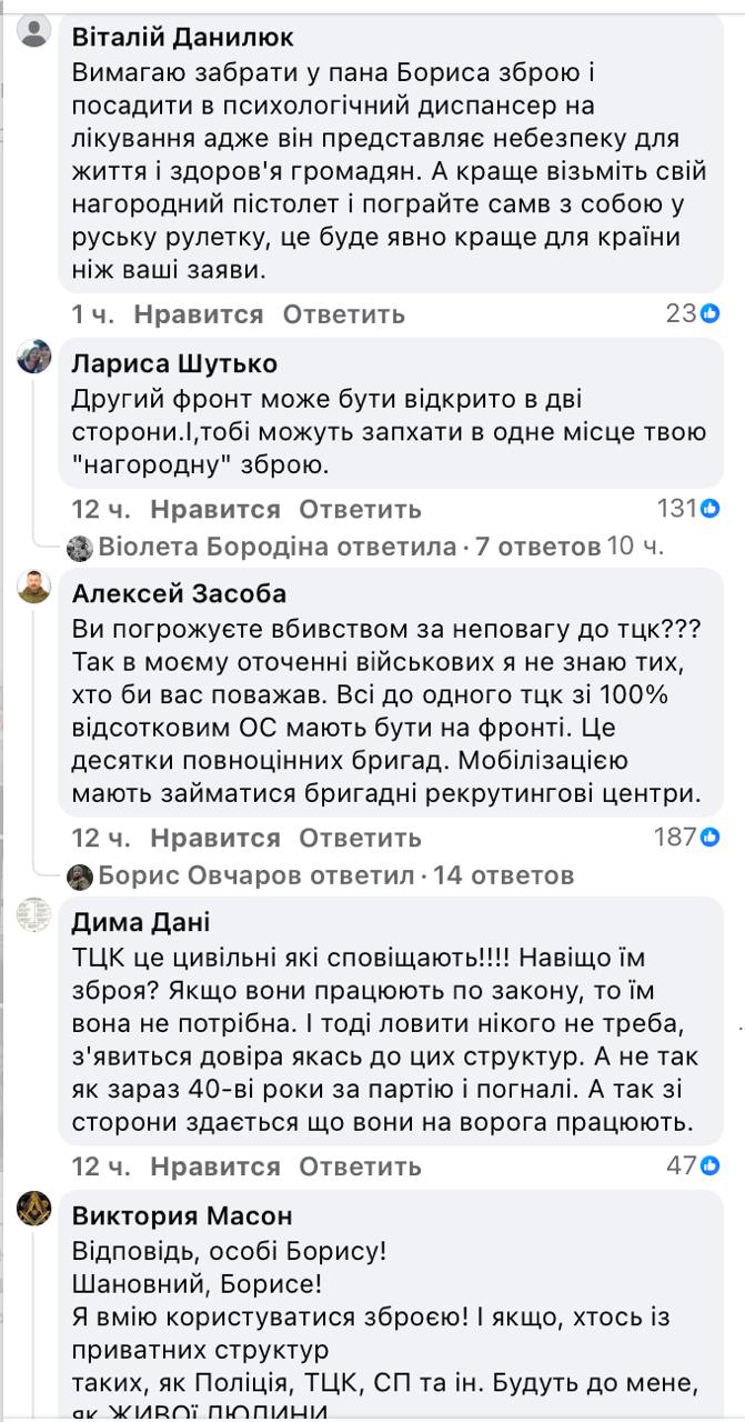 У коментарях дуже багато хто почав нагадувати Овчарову про випадки свавілля з боку військкомів, під час чого мобілізовані помирали.