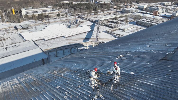 На Чорнобильській атомній електростанції (АЕС) все ще тліє утеплювач покрівлі саркофага, який у п'ятницю, 14 лютого, був атакований російським дроном. Верхолази розкривають конструкцію для гасіння.