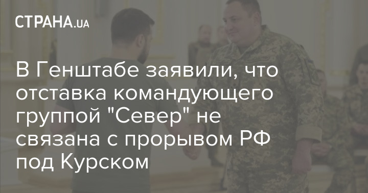 У Генштабі заявили, що відставка командувача групою "Північ" не пов'язана з проривом РФ під Курськом