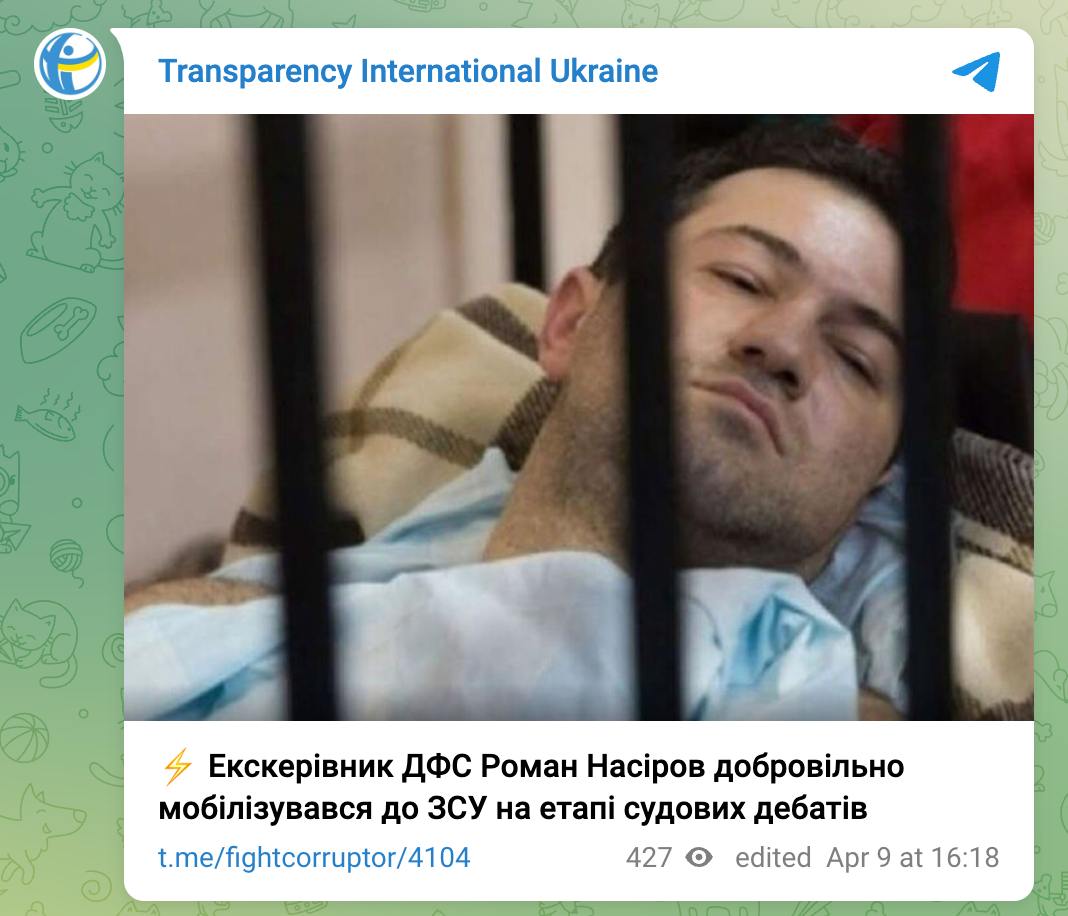Колишній голова Державної фіскальної служби (ДФС) Роман Насіров мобілізувався до ЗСУ на етапі судових дебатів у кримінальній справі, яку розслідує НАБУ.