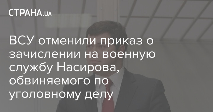 ЗСУ скасували наказ про зарахування на військову службу Насірова, обвинуваченого у кримінальній справі